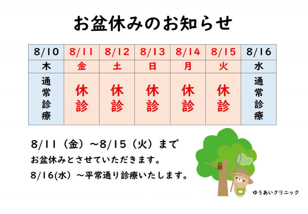 8/11(金)~8/15(火)までお盆休みとさせていただきます。