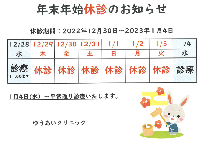 12月29日(木)~1月3日(火) 休診