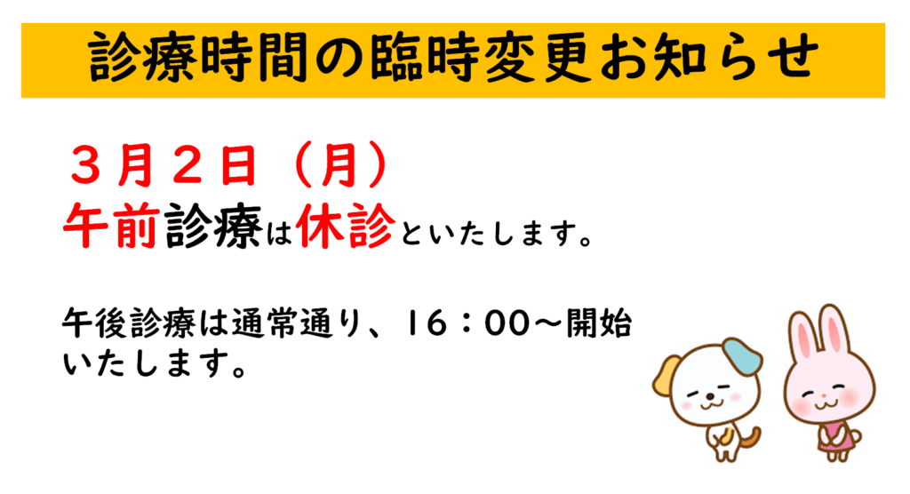 診療時間の臨時変更お知らせ