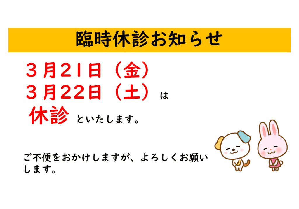 3月臨時休診のお知らせ